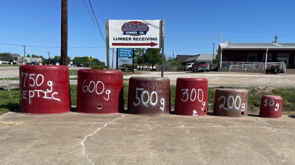 All septic tanks come with a lid and bushings. 50 GALLON GREASE TRAP – $311.99 + tax 200 GALLON – $599.99 + tax 300 GALLON – $699.99 + tax 500 GALLON – $899.99 + tax 600 GALLON – $999.99 + tax 750 GALLON – $1,377.99 + tax